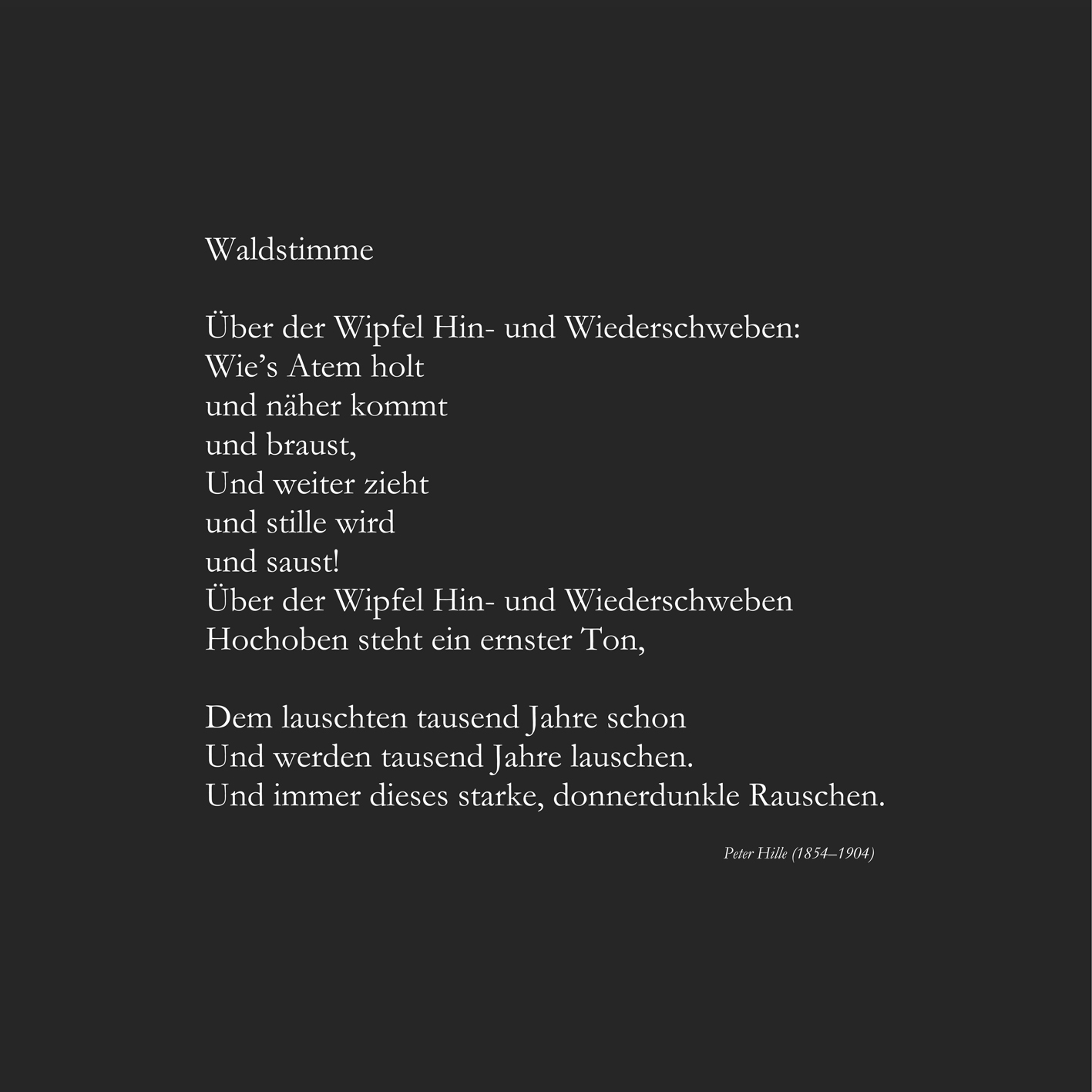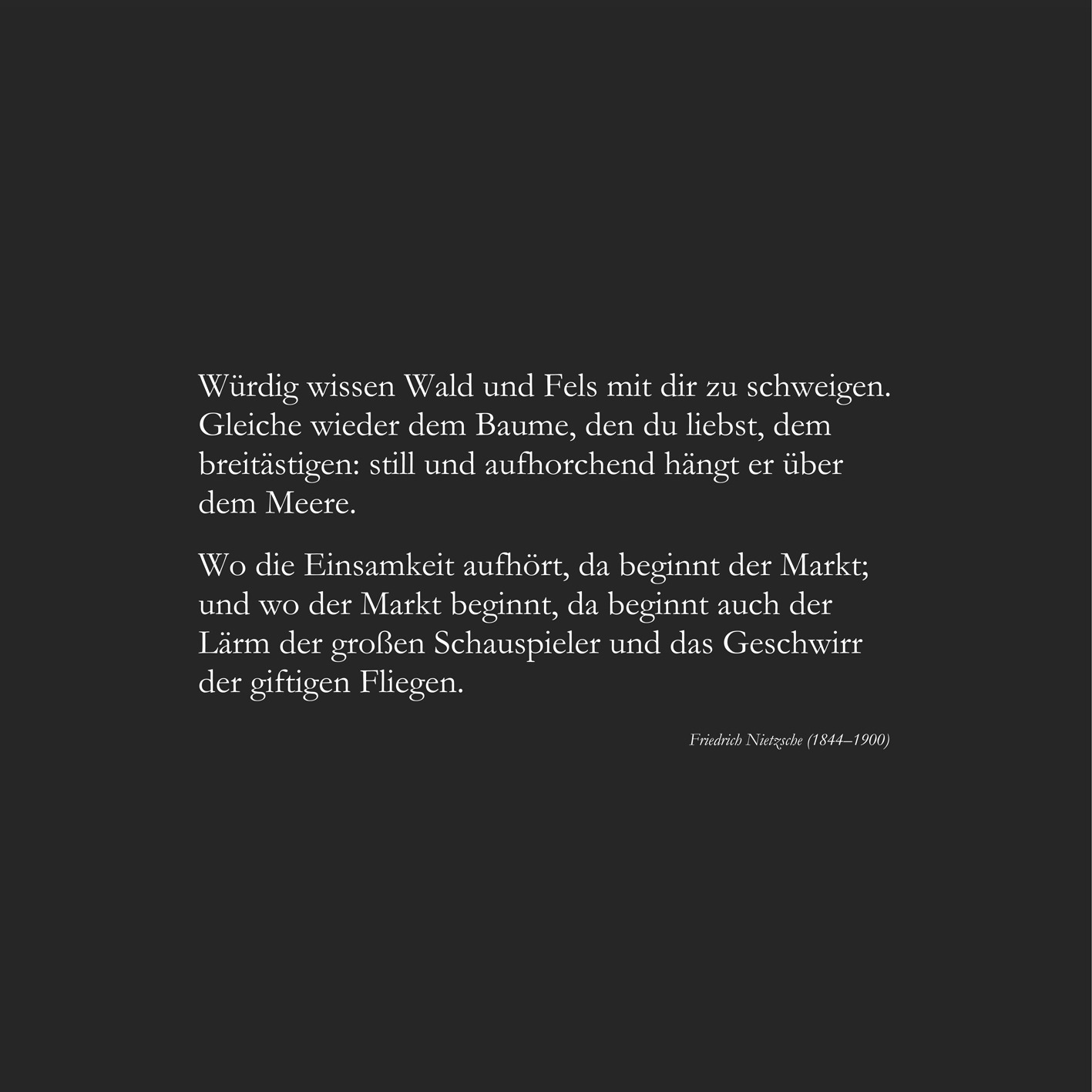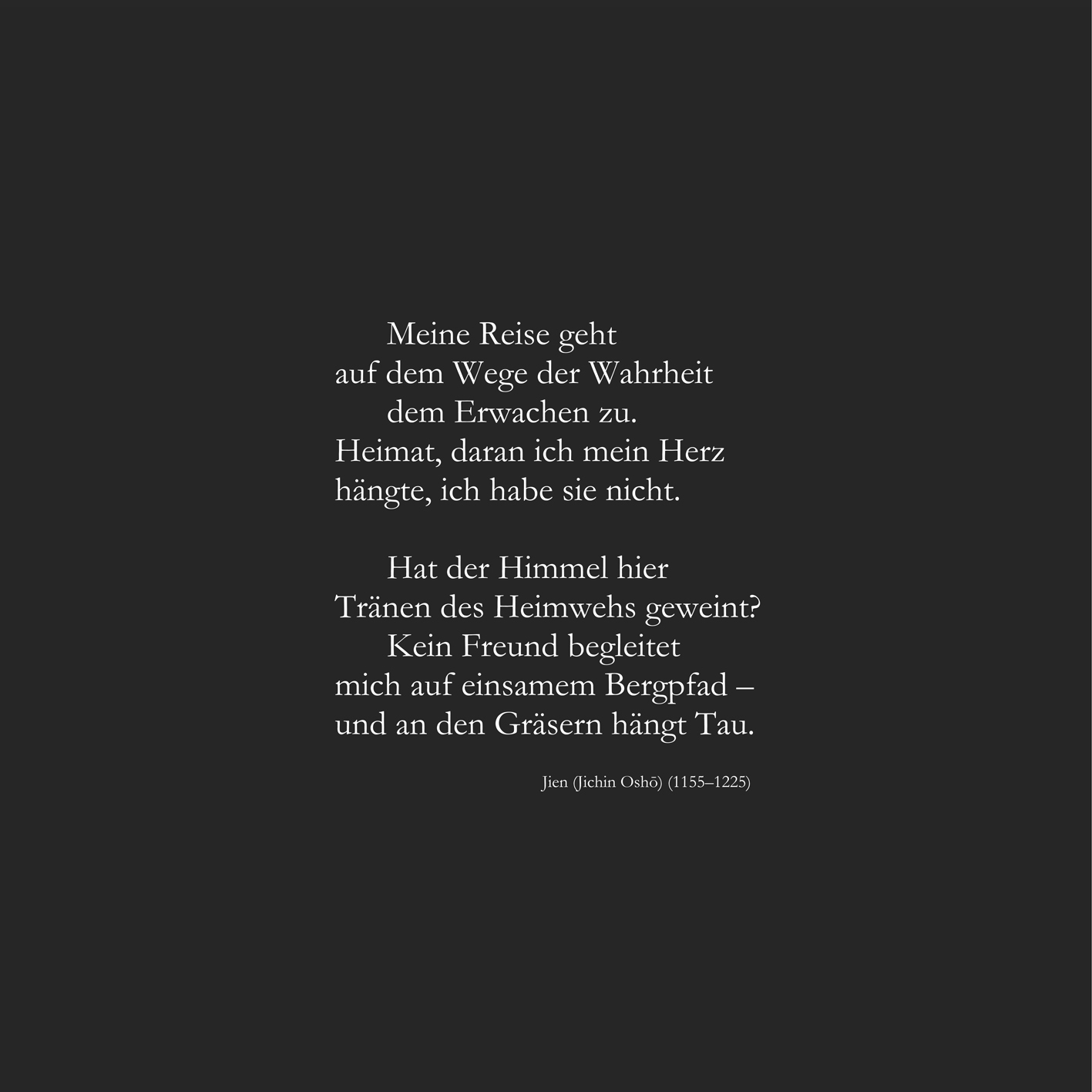 Vierzig quadratische Tafeln: japanische und deutsche Texte zum Wald sowie Fotografien von Wald in Japan (Honshu) und Deutschland (Berlin, Mecklenburg-Vorpommern, Brandenburg) – zwei Ländern, in denen die Vorstellung von Wald als Ort des Rückzugs, der Stille, der Einsamkeit und der Ewigkeit eine lange Tradition besitzt.