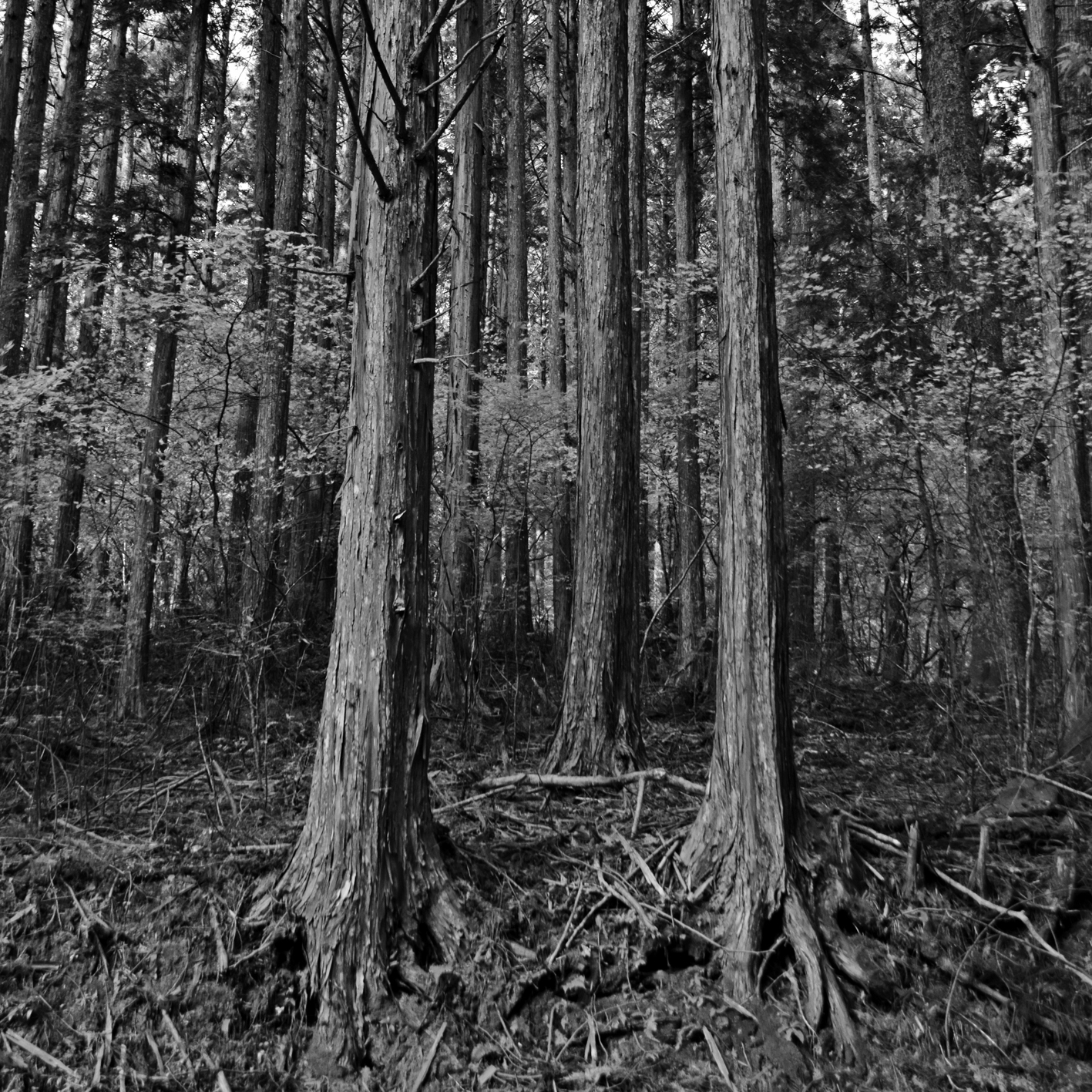 Forty square panels: Japanese and German texts on the forest and photographs of forest in Japan (Honshu) and Germany (Berlin, Mecklenburg-Vorpommern, Brandenburg) – two countries in which the idea of forest as a place of retreat, silence, solitude and eternity has a long tradition.