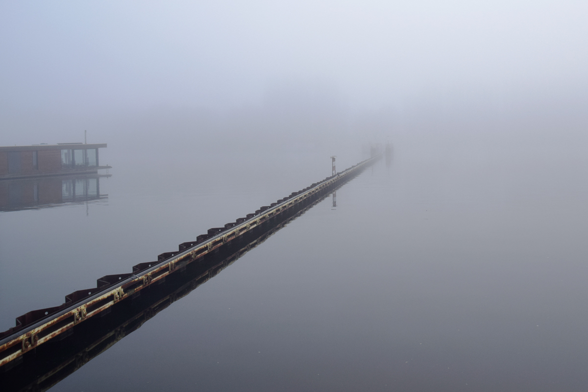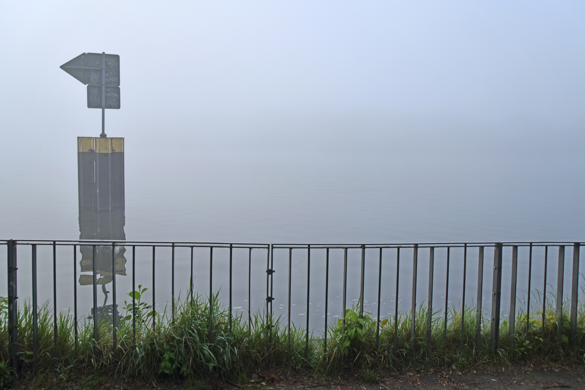 Nebel über dem See. Kein Blick ins Weite, das andere Ufer ein blaugraues Nichts. Wie viel näher doch das Nahe rückt, wenn das Ferne fehlt.